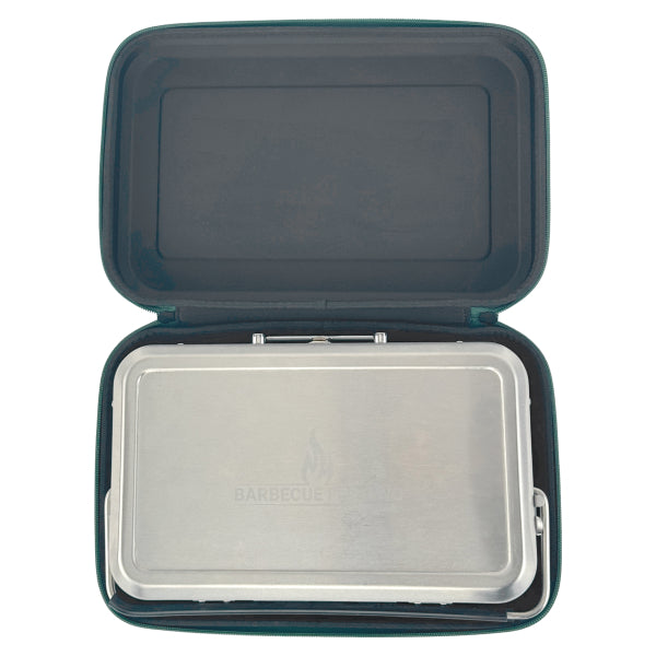 Compact transport bag with handle and double zipper for the ROASTIEE suitcase gas grill.
